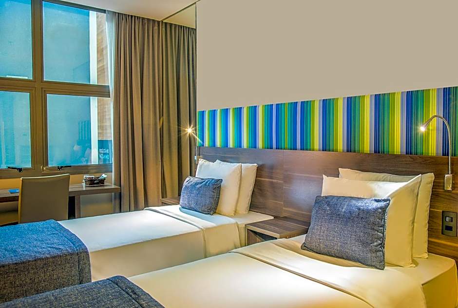 The spacious triple room provides air conditioning, a tea and coffee maker, a balcony with city views as well as a private bathroom featuring a walk-in shower.